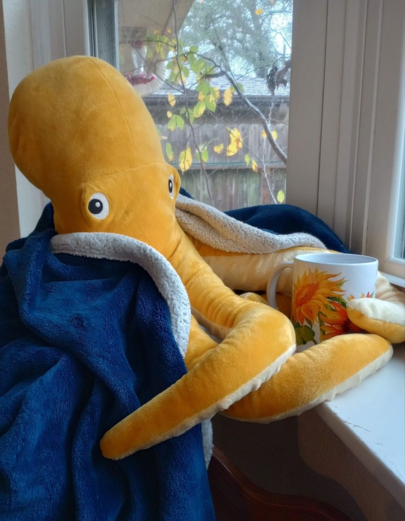 Quillbert is right here with me in Texas, hunkering down inside because it’s so cold and rainy out there! He might be an octopus, but he still prefers to be inside where it’s warm and toasty. At least, that’s what he told me. And who am I to question?