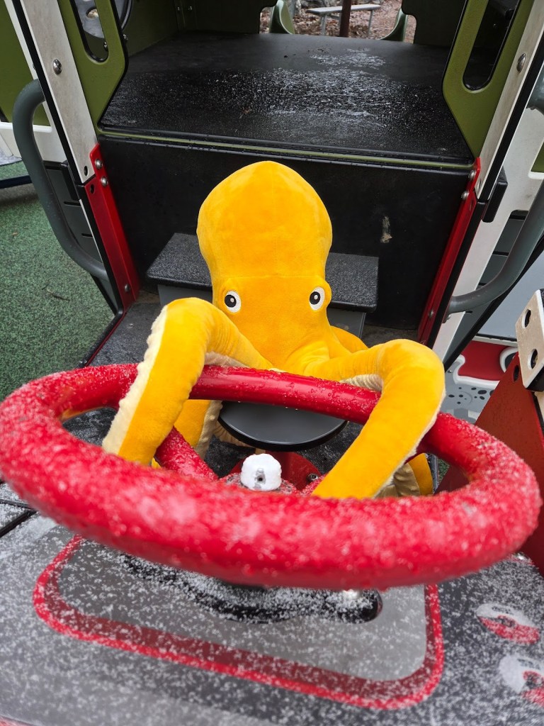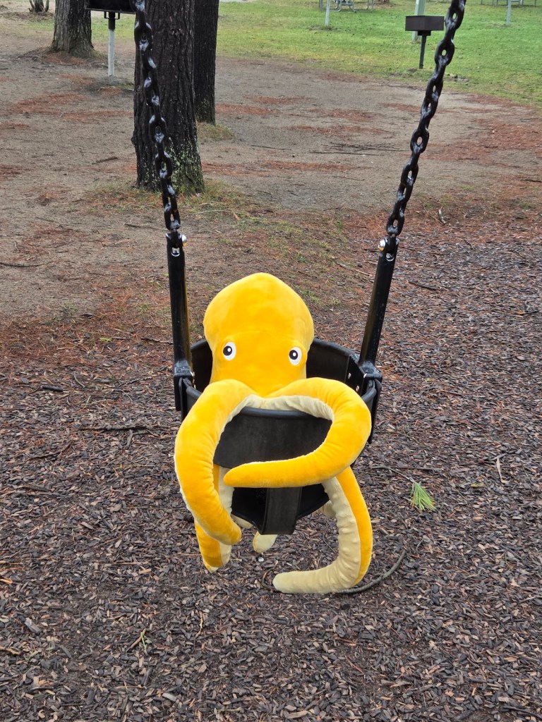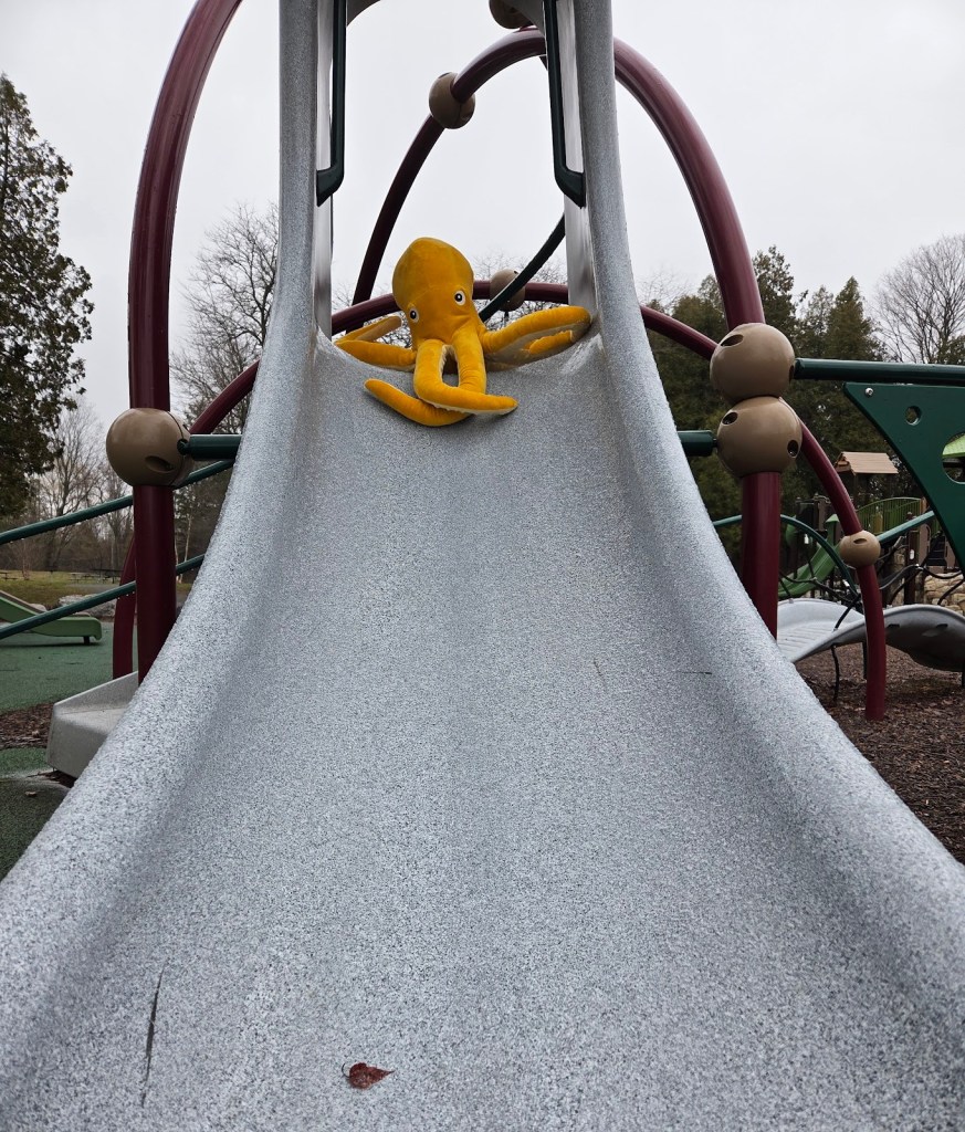 Even though it was cold, Quillbert got to have a lot of fun at Green Lakes State Park. As you can tell, we explored the playground, before venturing further into the park. Quillbert was a little sad he couldn’t use his eight arms on the monkey bars, though.